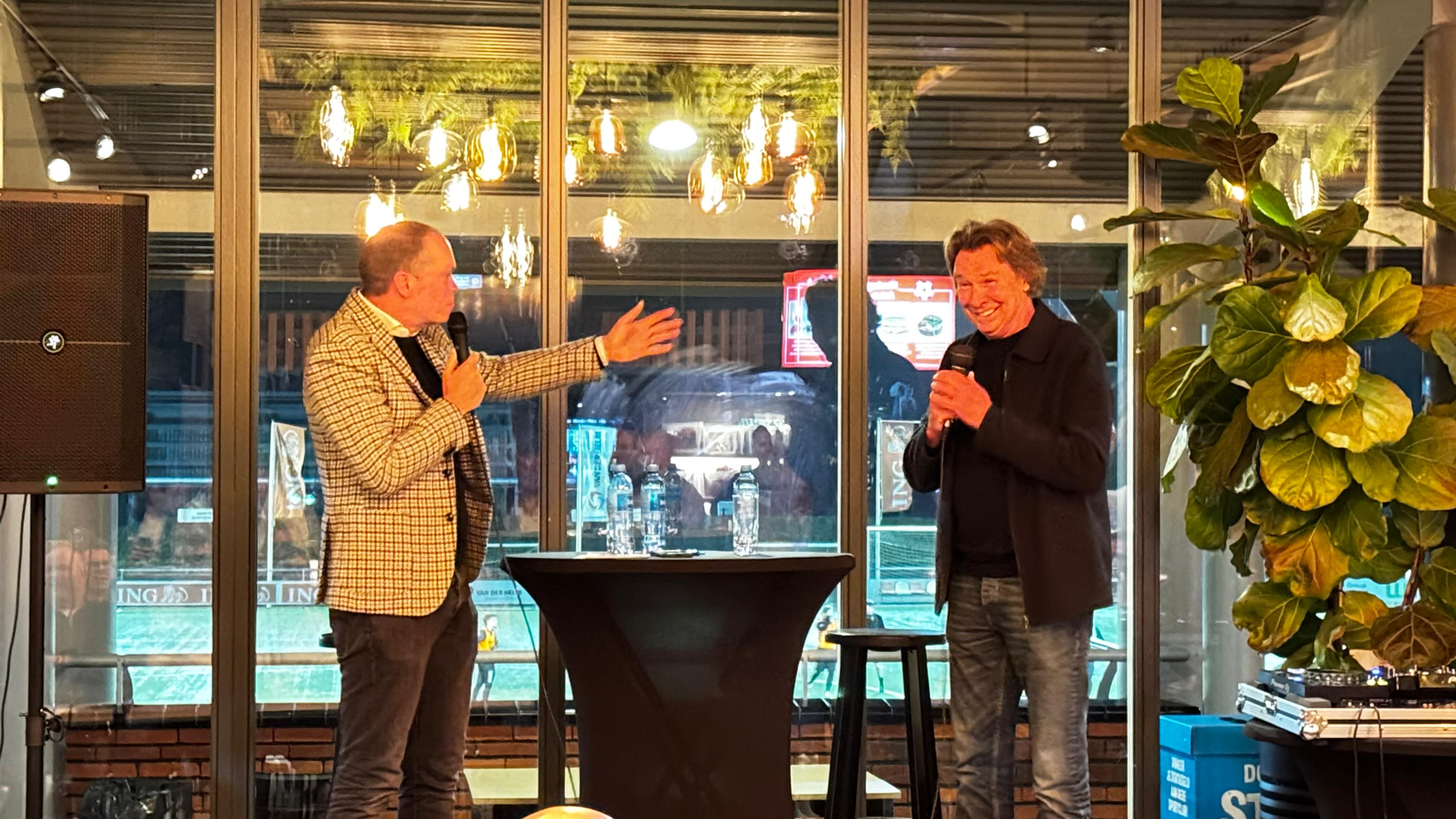 Daarna was het de beurt aan Hans Kraaij junior. Met zijn bekende enthousiasme en een reeks prachtige anekdotes uit de voetbalwereld wist hij de zaal meerdere keren hardop te laten lachen. Onder de vakkundige leiding van Frank Stout bleef het tempo hoog en de sfeer uitstekend.